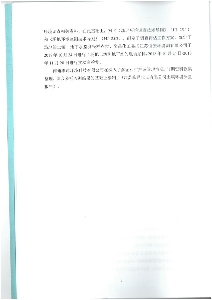 江苏隆昌化工有限公司场地土壤环境质量报告主要内容
